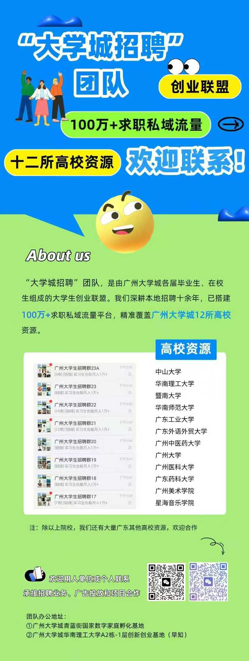 | 版权所有: 广州大学城兼职网www.dx-job.com (广州搜洋广告有限公司) 本站信息严禁任何机构复制或转载,否则我们必将法律追责!! | |||