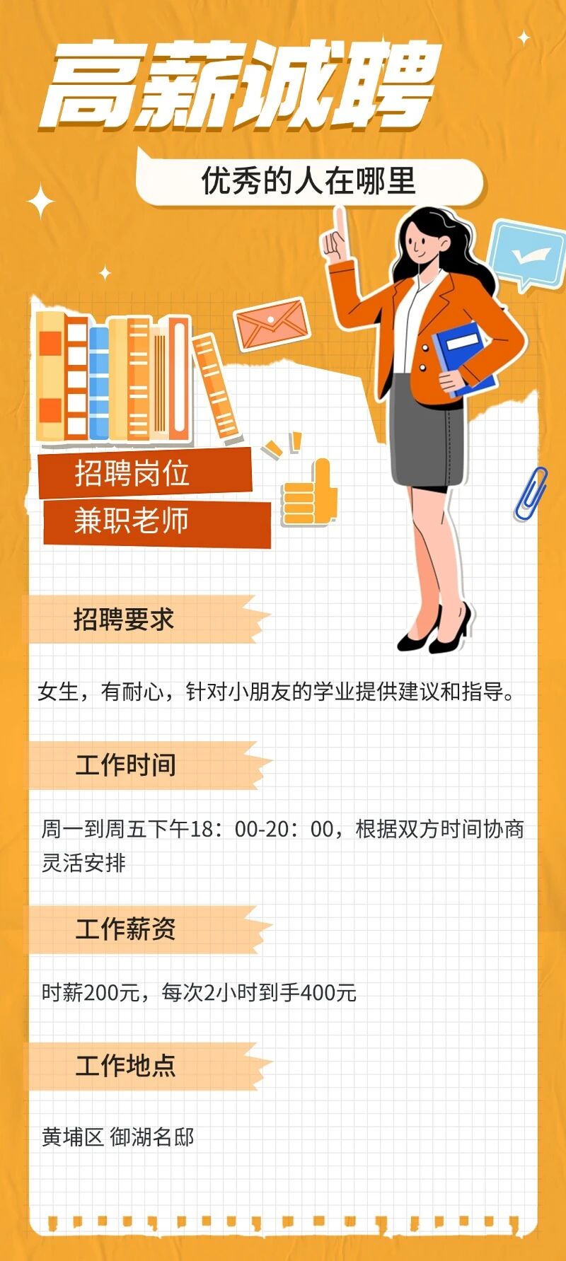 | 【广州招聘】2小时到手400元!高薪招募兼职老师,辅导小朋友写作业,具体时间双方可以协商~ |
